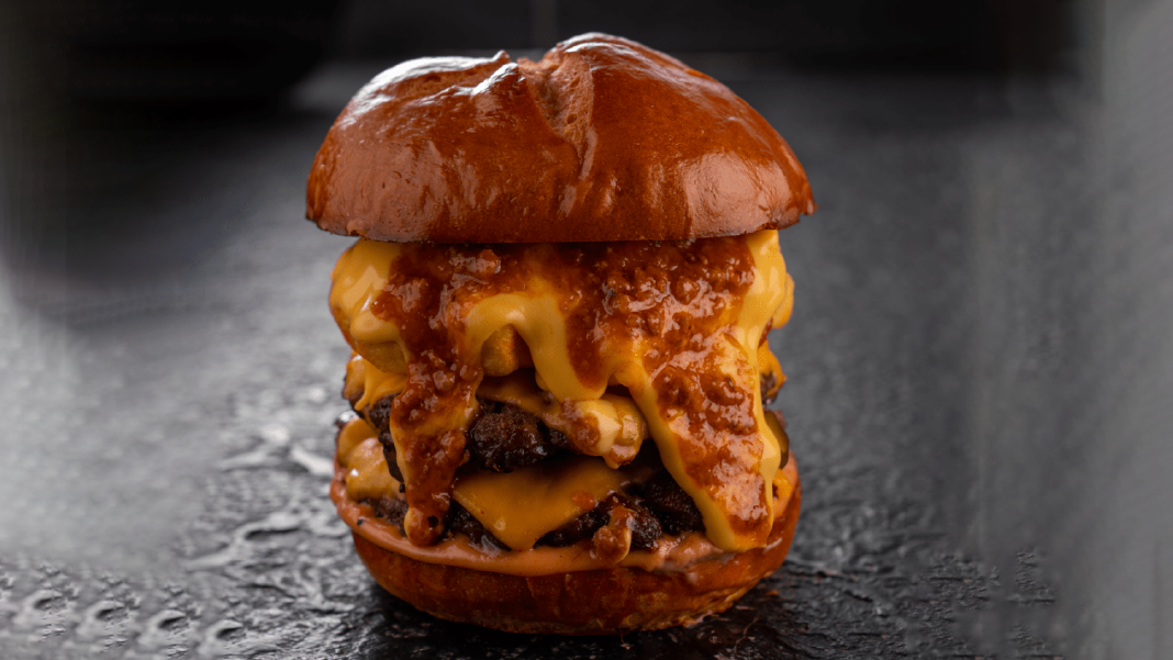 خبز البريوش – ماي صوص – مخلل – لحم الواغيو – جبنة أمريكية – سلوبي جو – بطاطس مقلية مع جبن – تقدم مع إضافات ليشلازز